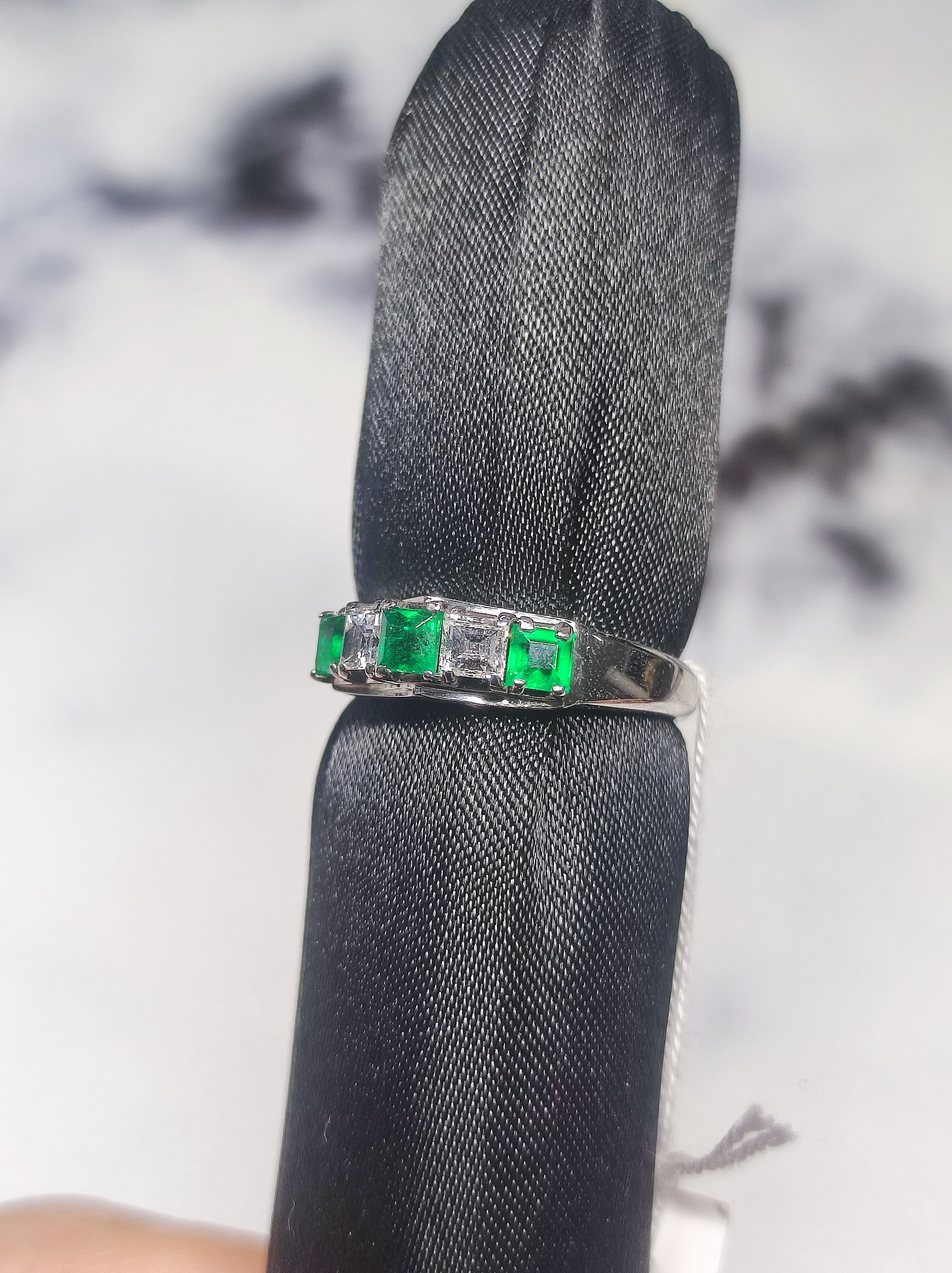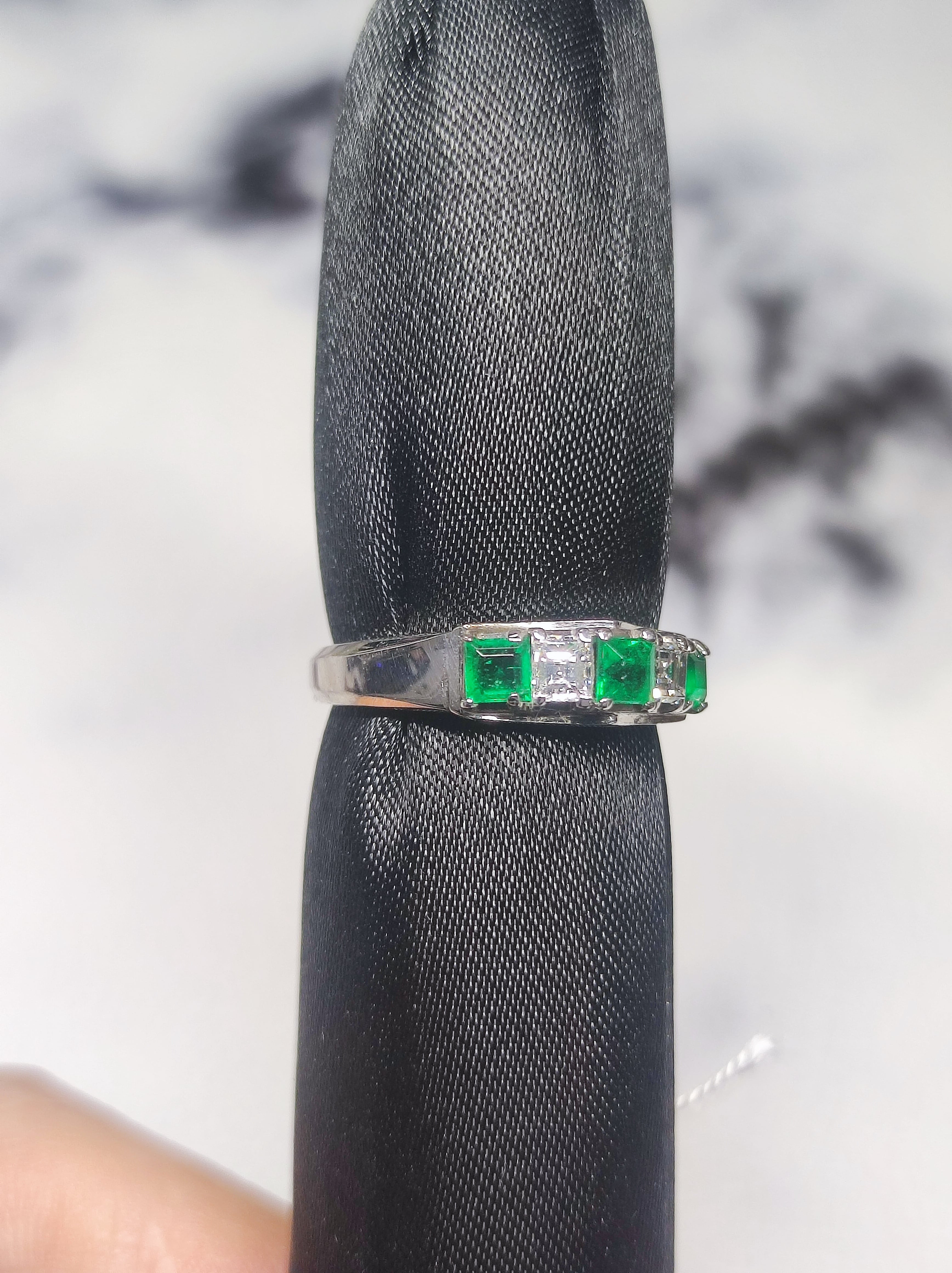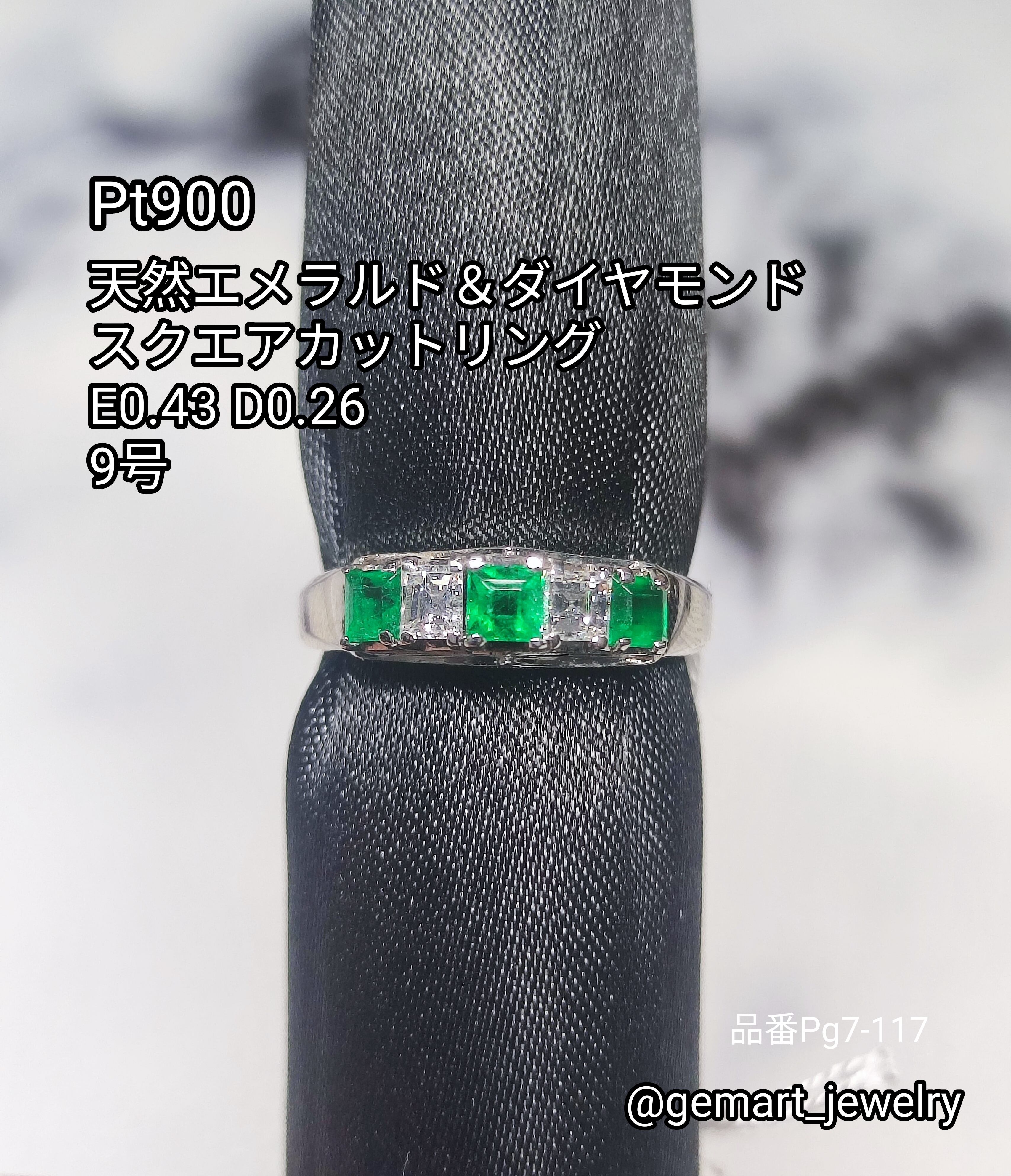 Pt900 天然エメラルド&ダイヤモンド スクエアカットリング 9号のご案内です。