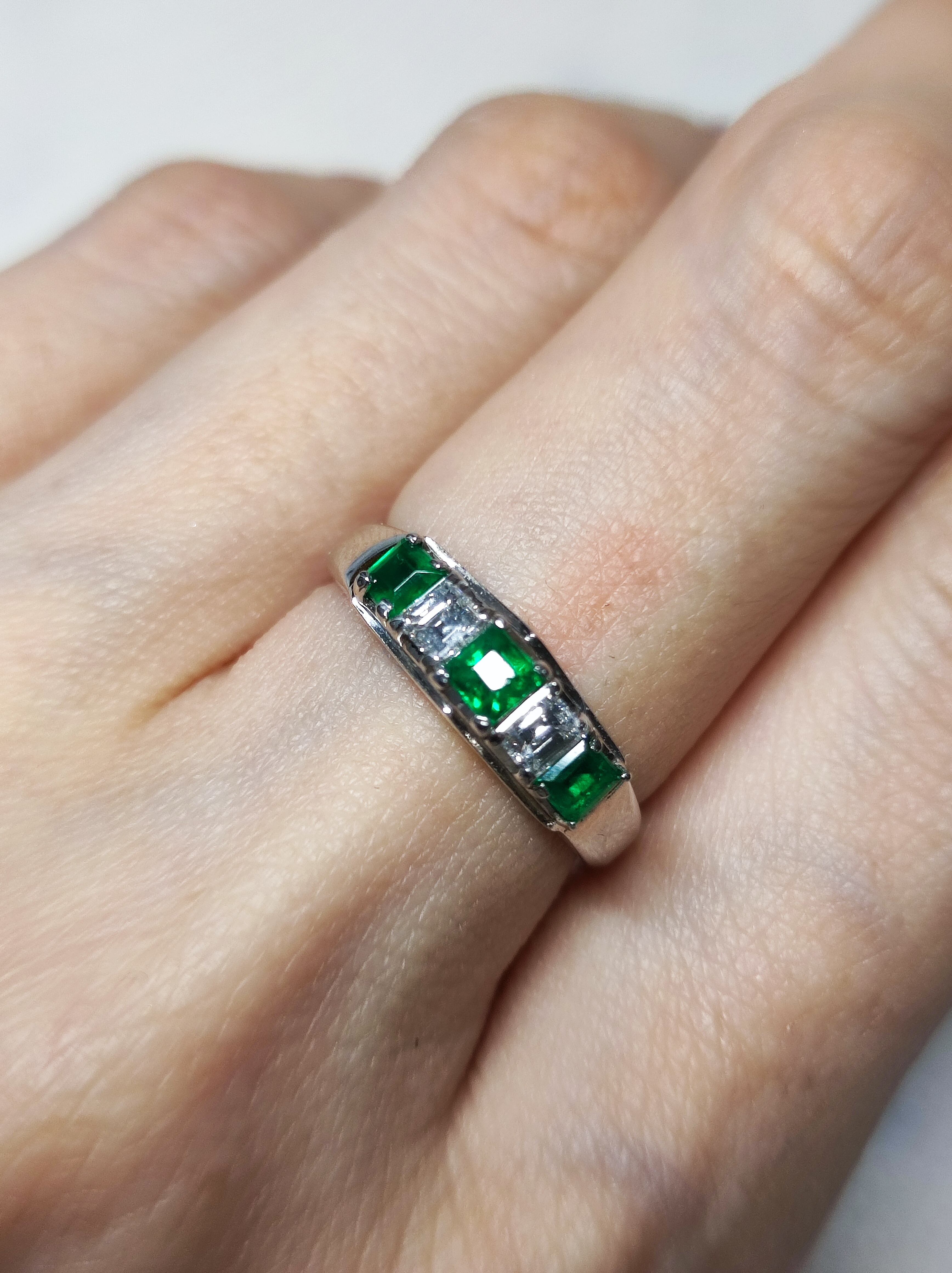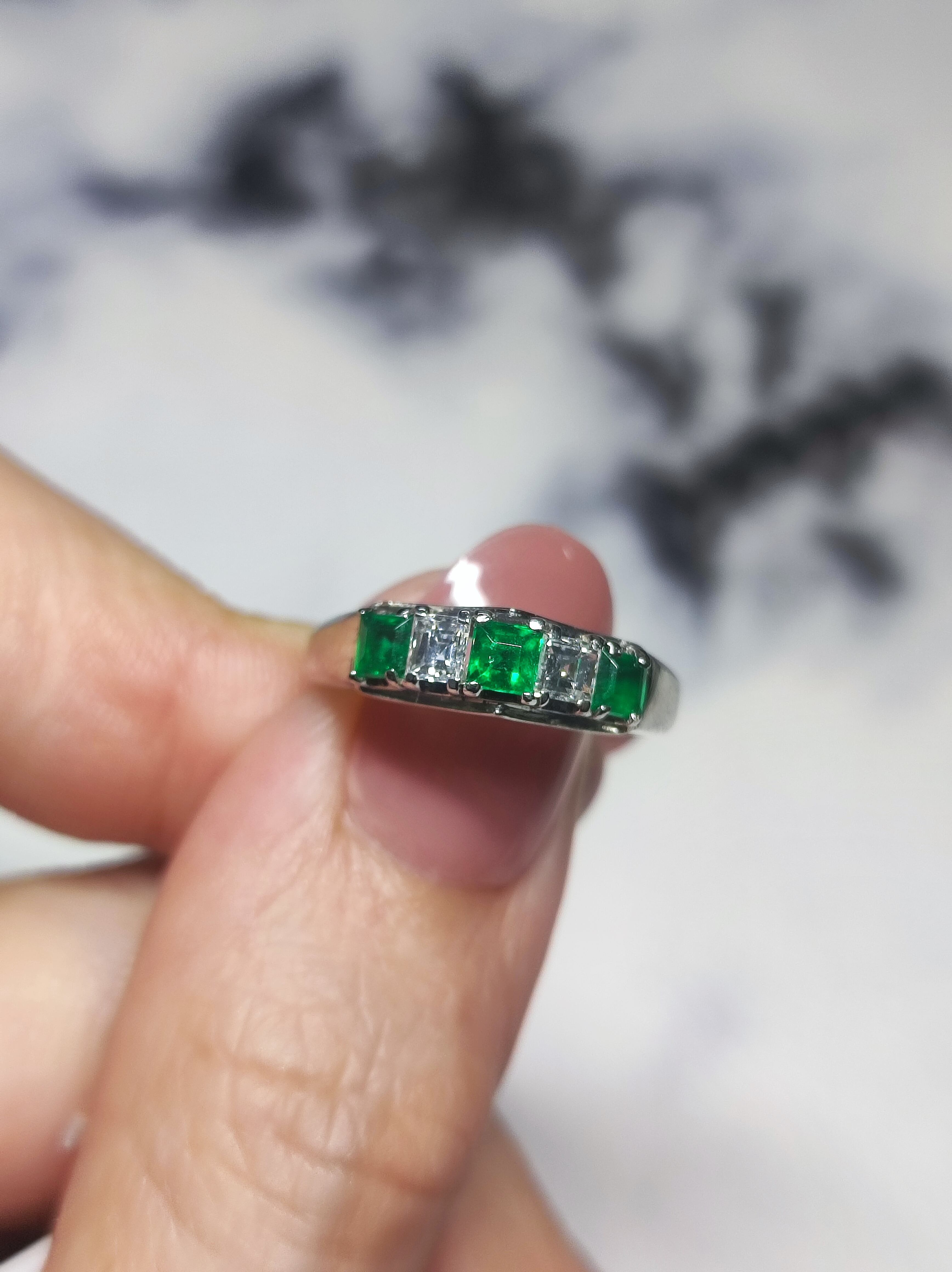 Pt900 天然エメラルド&ダイヤモンド スクエアカットリング 9号