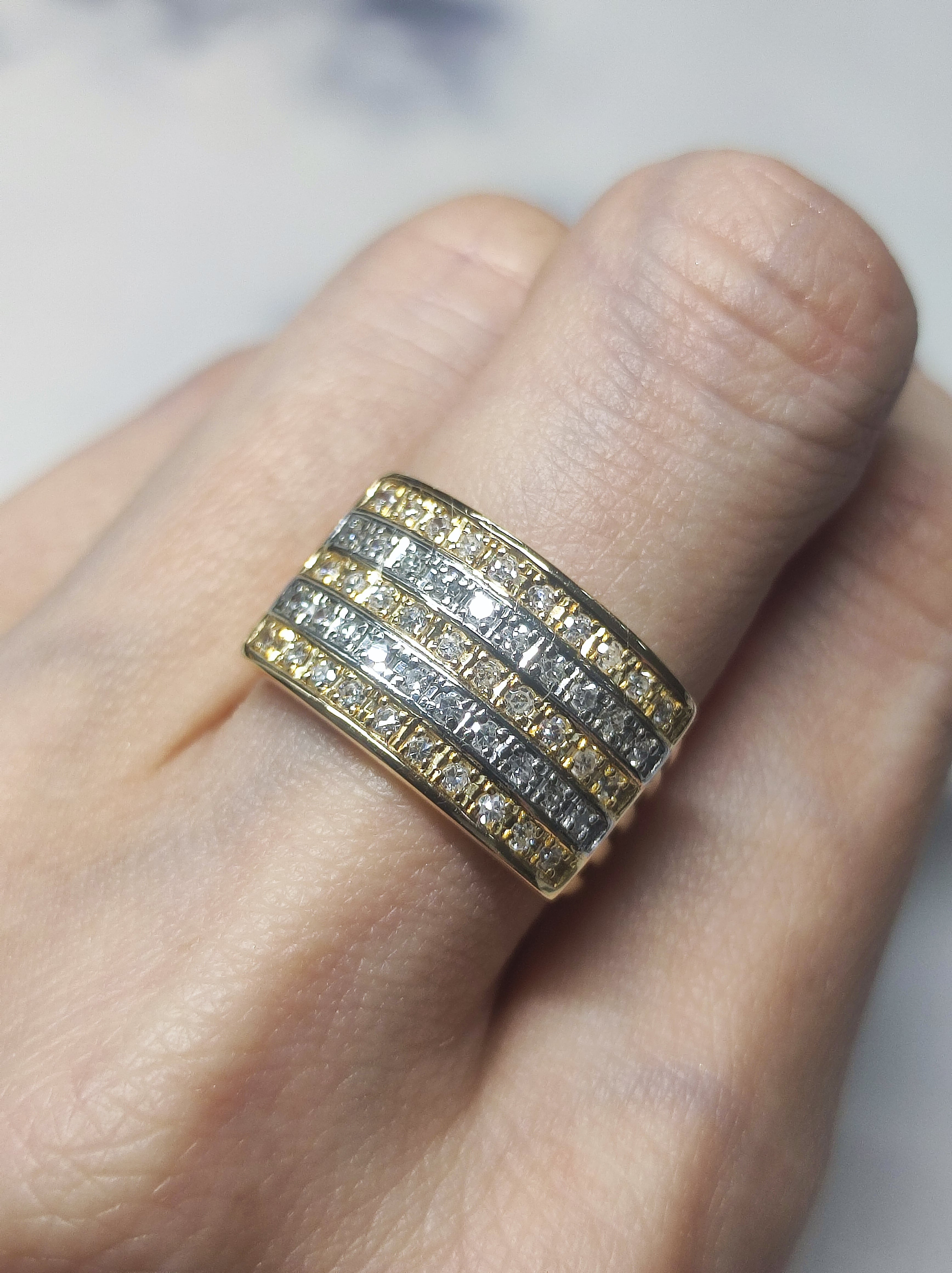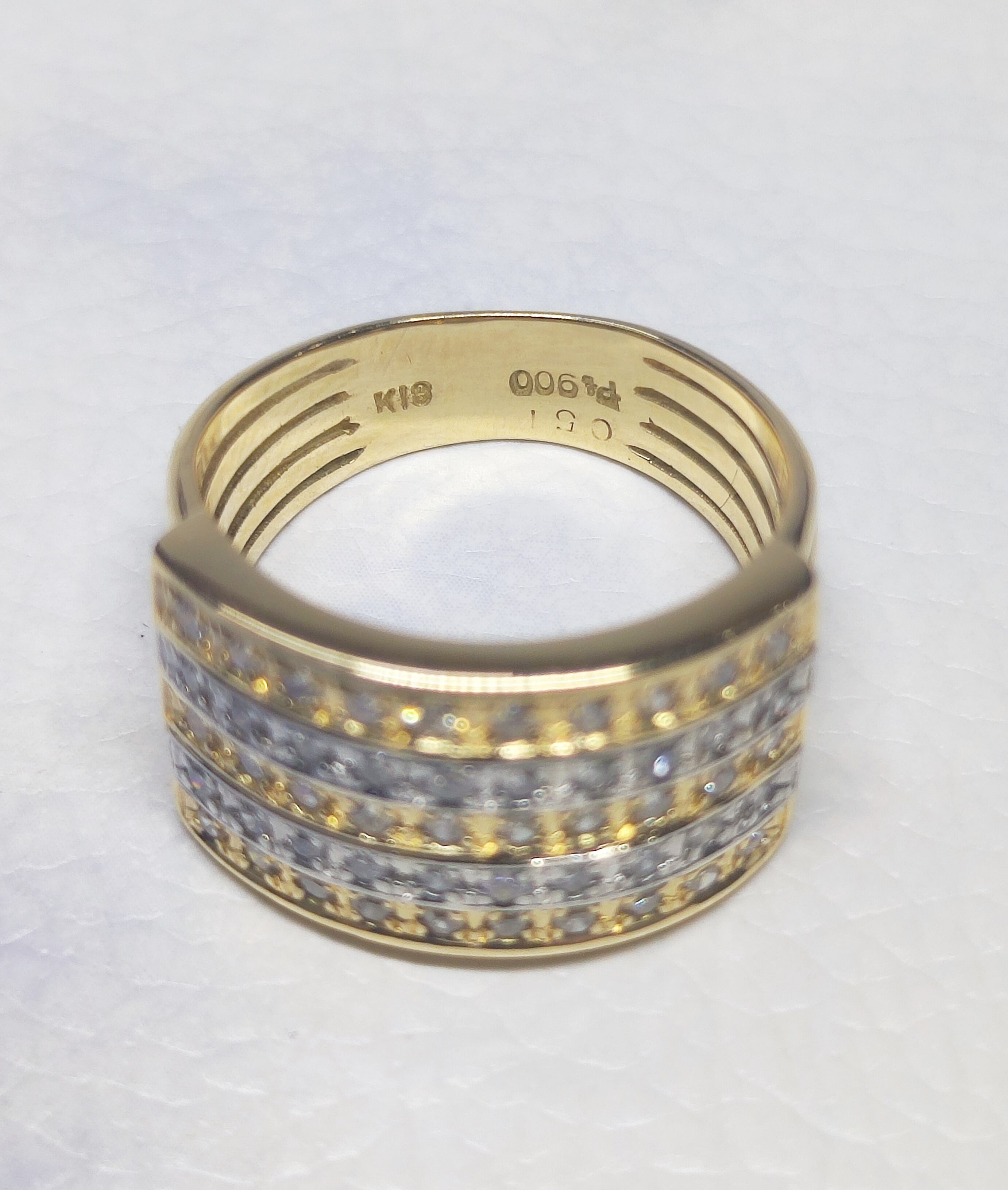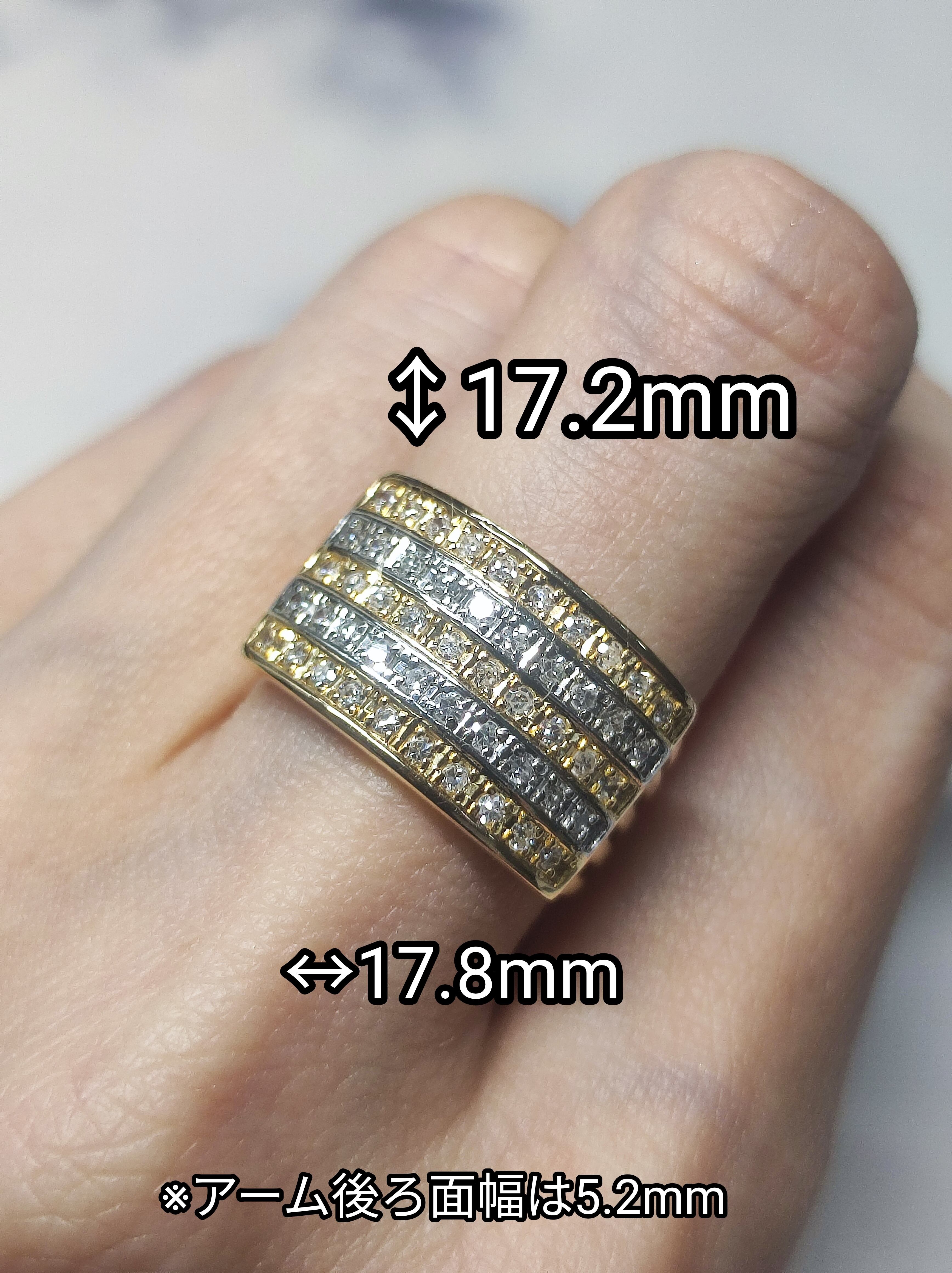 Pt900/K18地金コンビと、個性的なデザインが際立つ天然ダイヤモンドリング。
