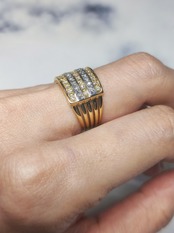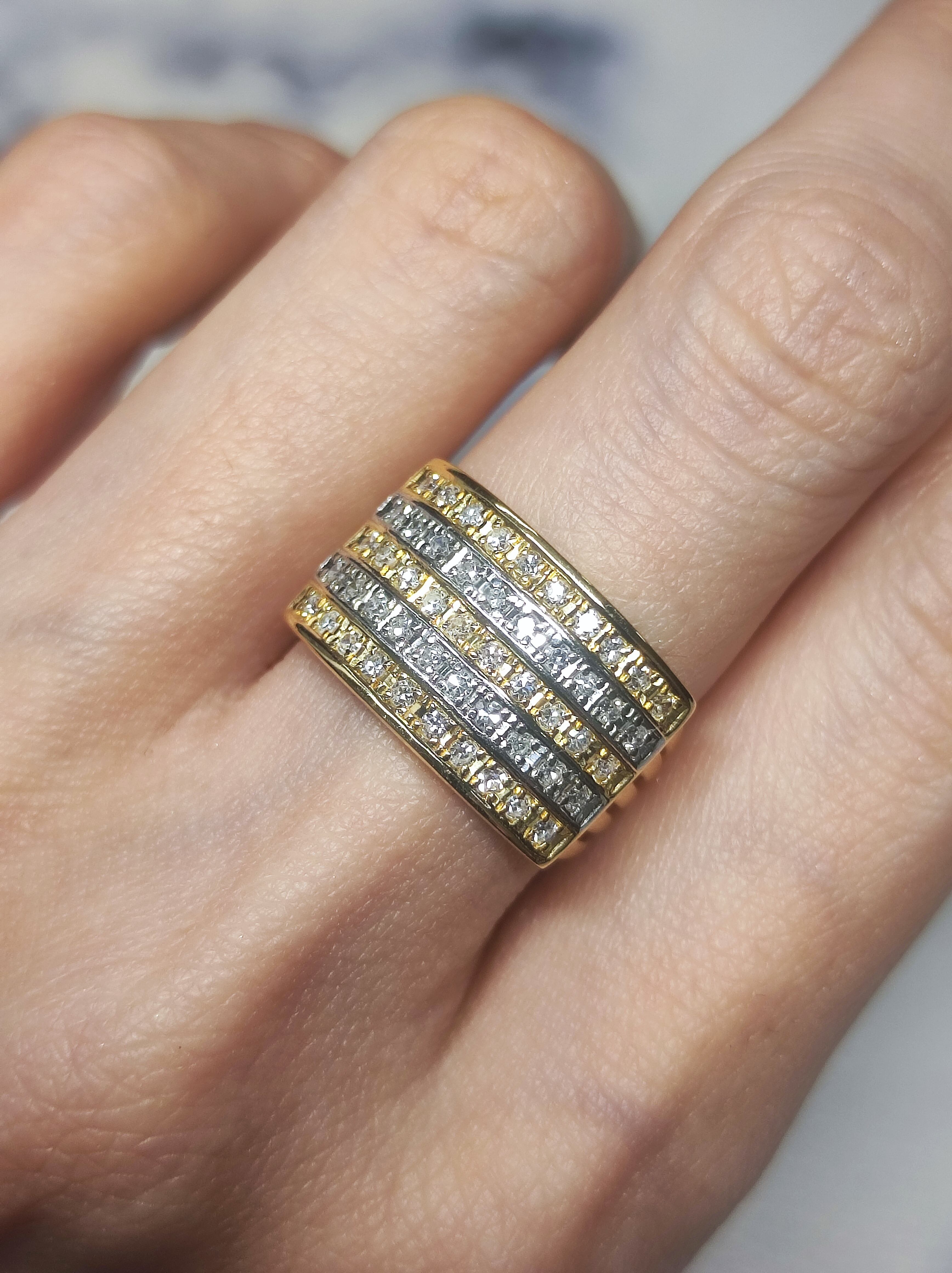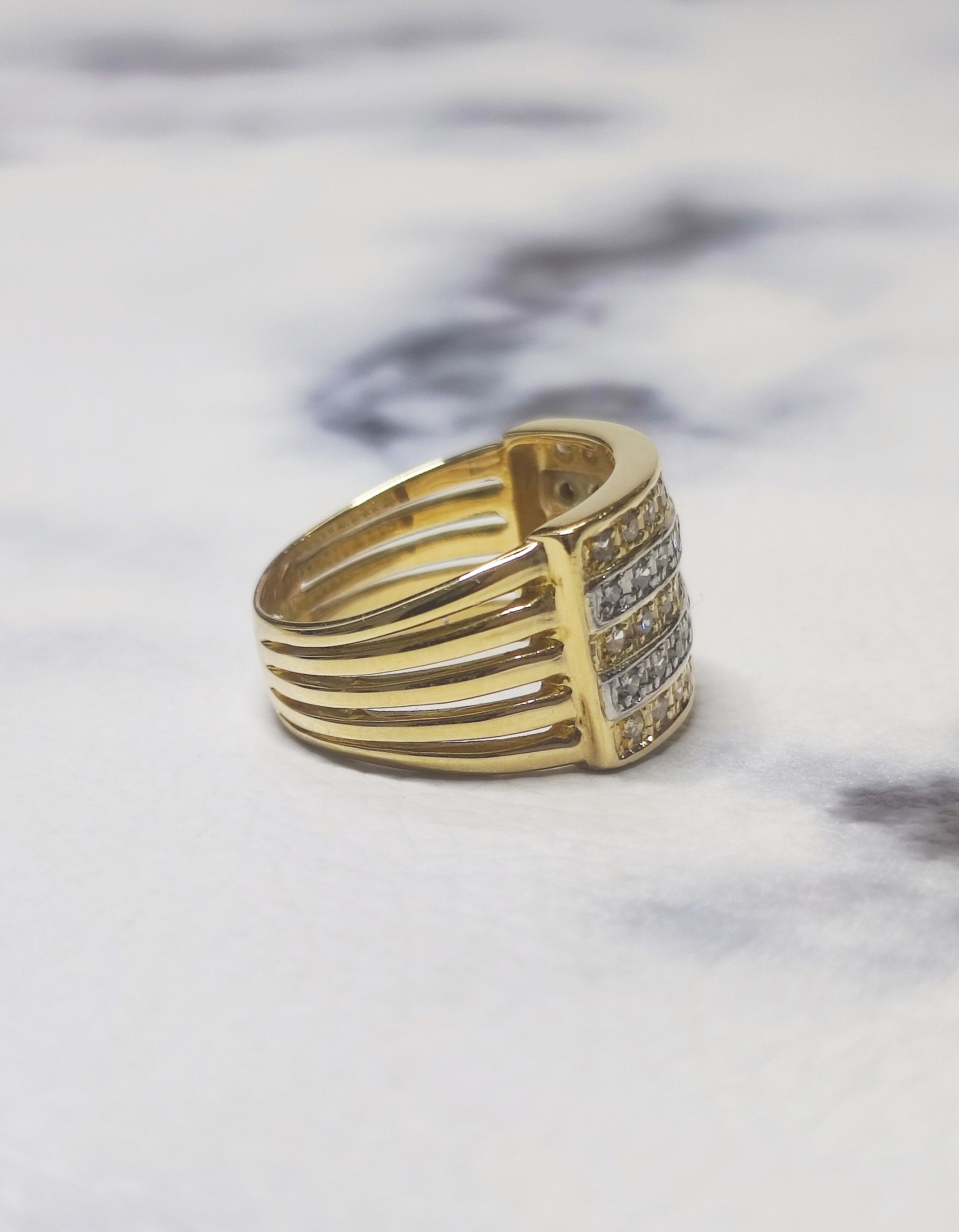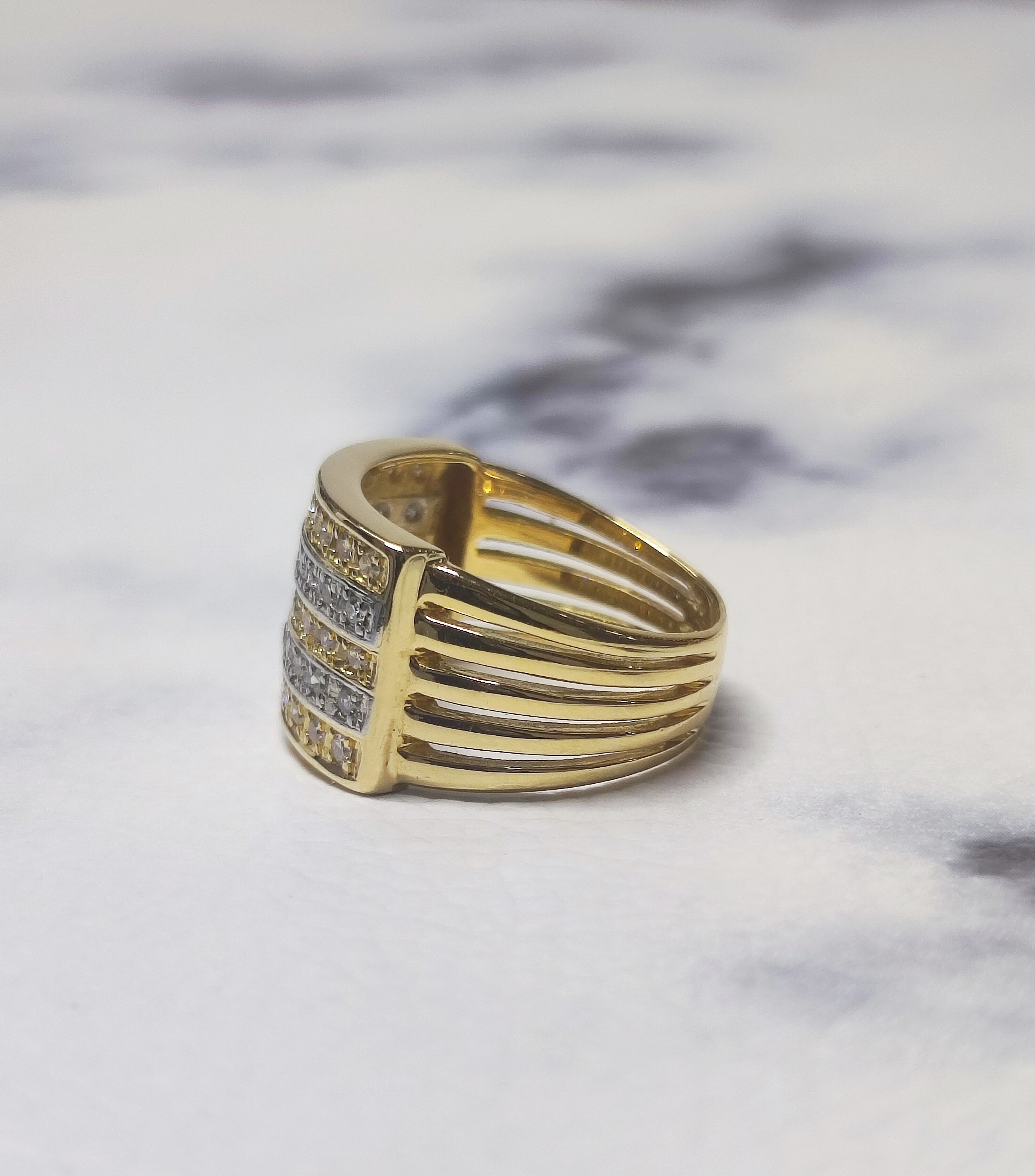 Pt900/K18地金コンビと、個性的なデザインが際立つ天然ダイヤモンドリング。