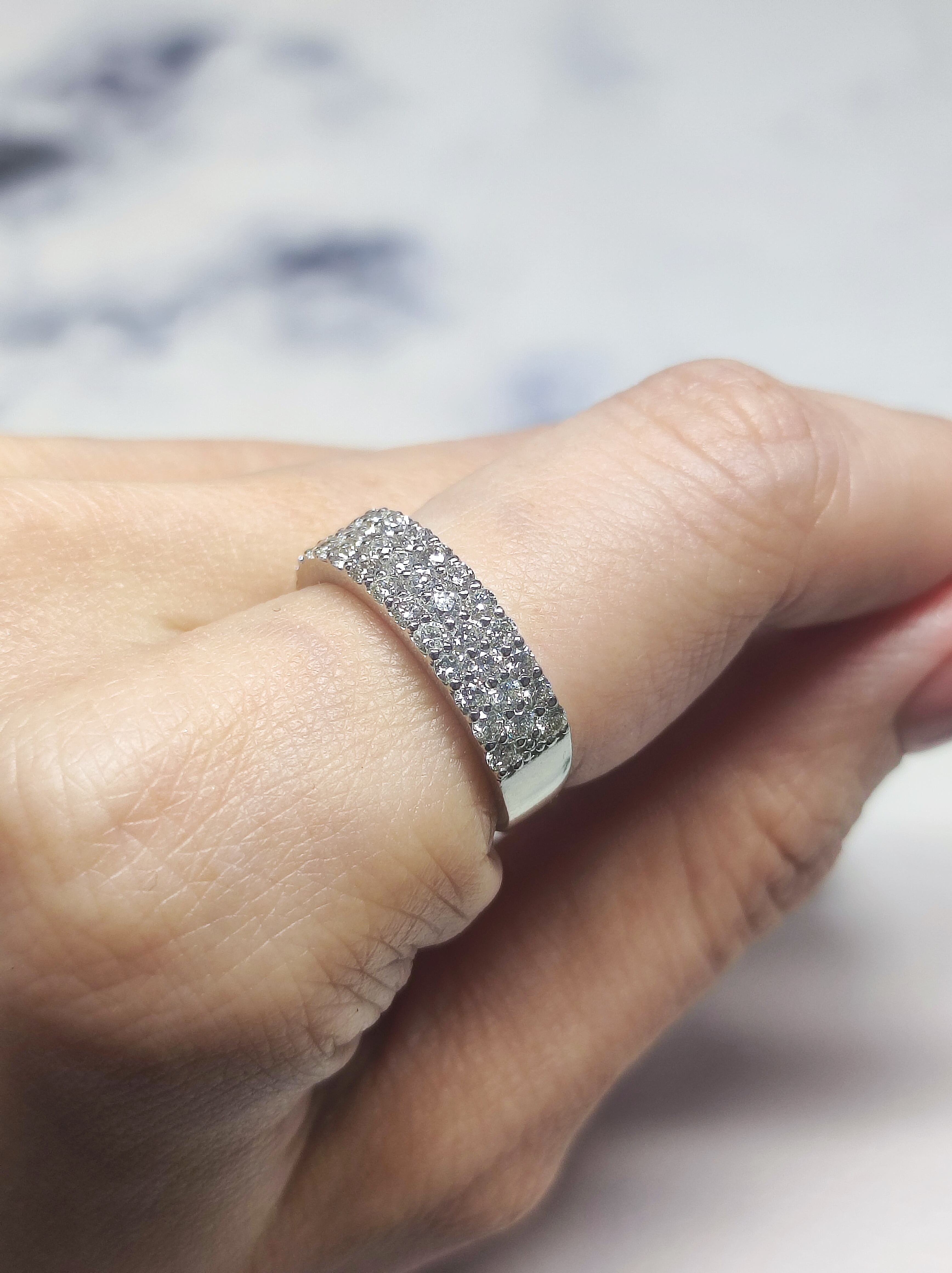 こちらのリングは、パヴェハーフエタニティデザインで仕上げられています。天然ダイヤモンド1.05ct仕様✨️輝きが指先を華やかに彩り、かっこよさを引き立てます。